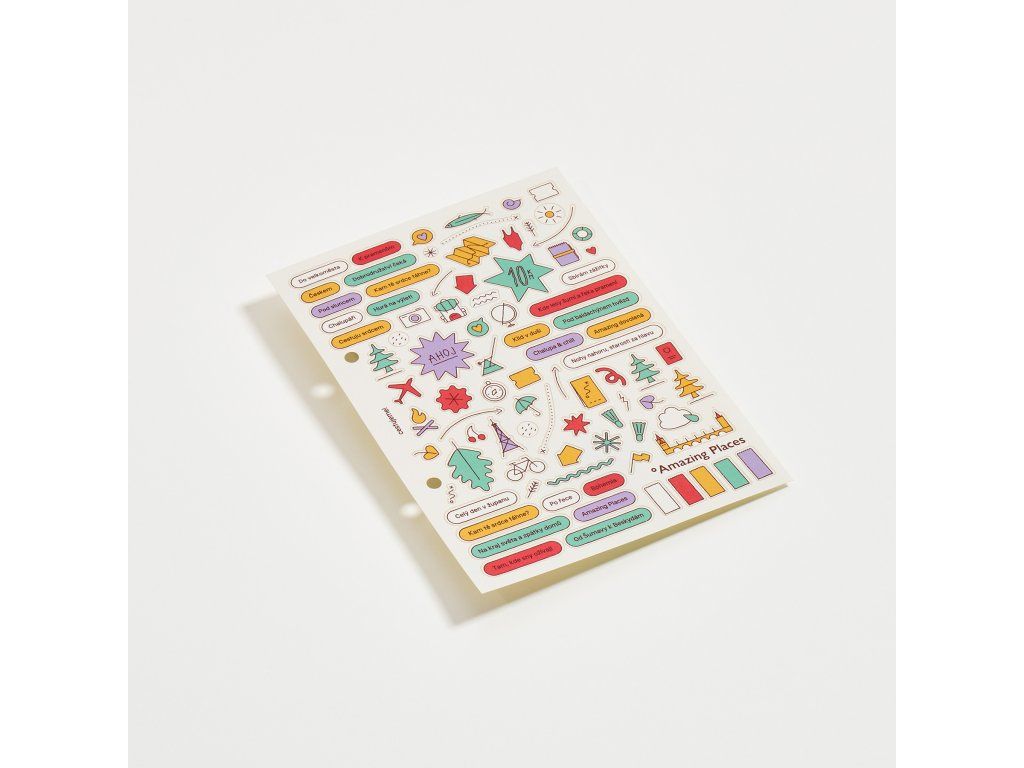 - tip: Samolepky tvoří sehranou dvojici s naším cestovatelským deníkem Do všech stran. Rády se ale podívají i za papírové obzory – třeba na kryt telefonu nebo pouzdro na doklady.